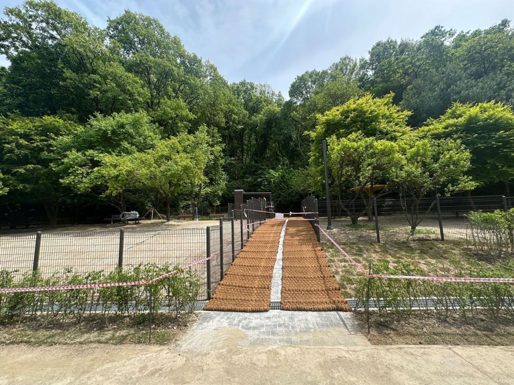 이와 함께 대형견과 중·소형견 놀이터를 높이 1.5m의 철망 울타리로 둘러싸고, 가운데 통로엔 폭 2.4m, 길이 20m의 멍석(야자 매트)을 깔아 인도를 냈다.