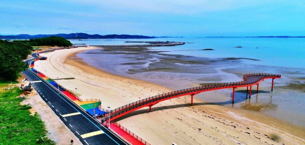 남당무지개도로는 새하얀 모래사장과 대비를 이루는 감각적인 무지갯빛의 색채 디자인으로, 바다와 하늘이 어우러지는 장면을 배경 삼아 걷기만 해도 자연스레 인생샷이 완성되는 SNS 업로드 명소로 입소문을 타고 있다.