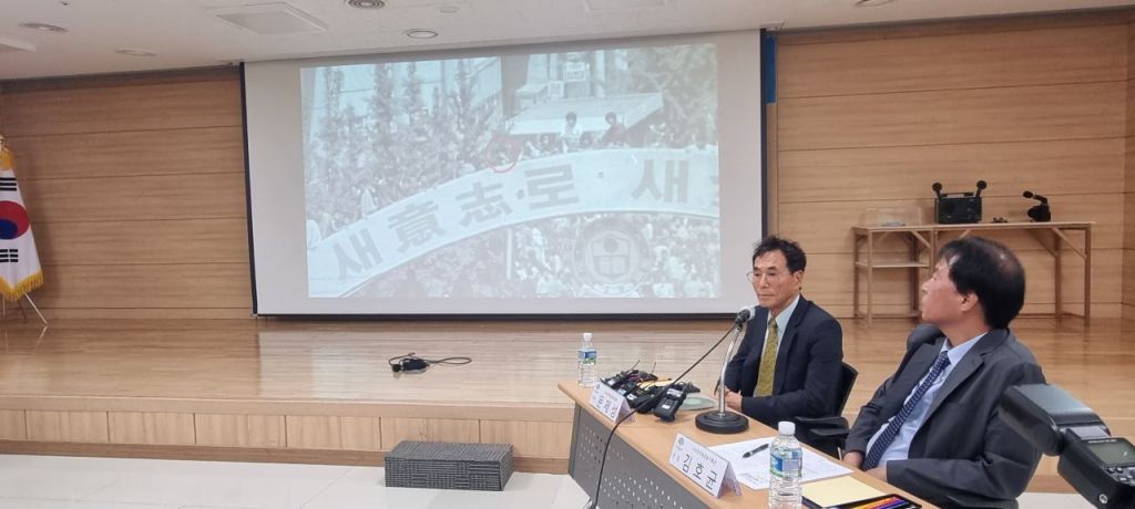 27일 오전 5·18민주화운동기록관에서 열린 시사회에서 기증자 문제성씨가 당시 상황에 대해 설명하고 있다. 민찬기 기자