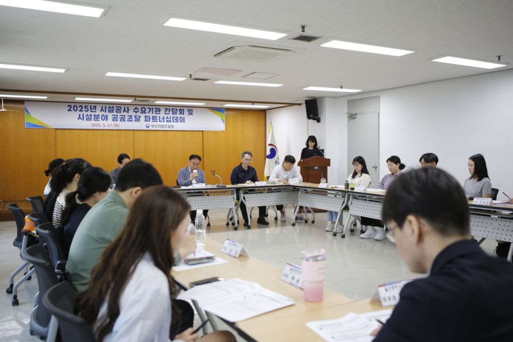이날 간담회에는 부산시교육청, 부산교통공사, 울산 울주군 등 시설공사 계약 실적 상위 11개 기관의 담당자 25명이 참석했다.