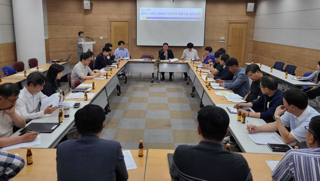 광주시는 27일 시청 세미나1실에서 '2025년 시내버스 파업 대비 유관기관 비상수송 대책회의'를 개최했다. 이날 회의에는 광주시, 5개 자치구, 광주시교육청, 광주교통공사, 시내버스회사 관계자 등 23명이 참석했다.