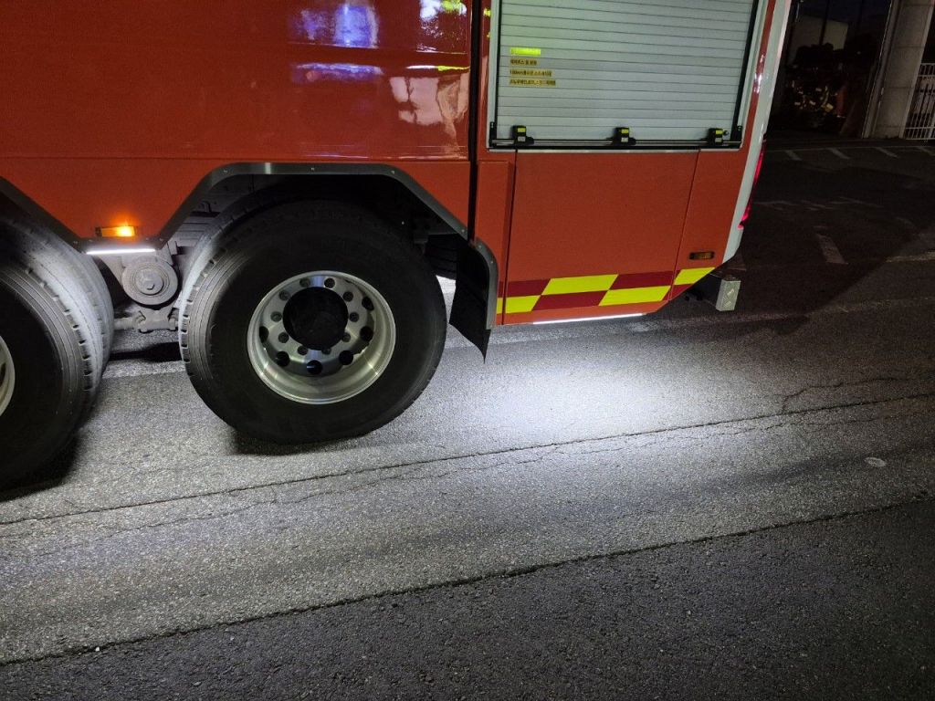 야간 가시성 확보를 위해 설치된 소방차 뒷바퀴 조명등. 광주 북부소방 제공