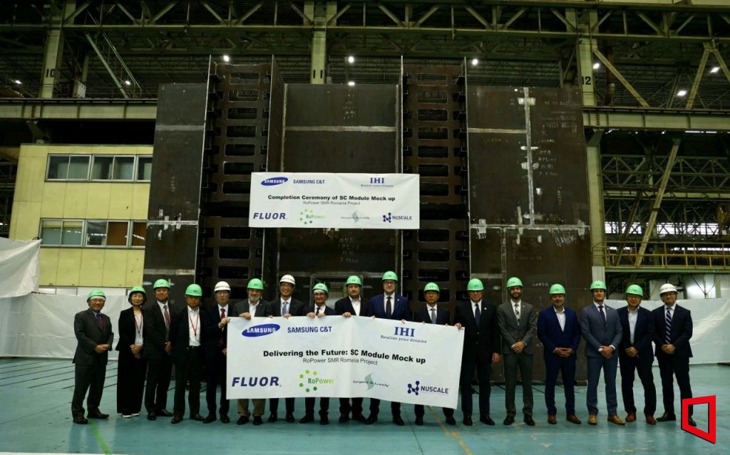 삼성물산은 27일 일본 요코하마 IHI 공장에서 루마니아 SMR 프로젝트 사업주인 로파워, 미국의 플루어·뉴스케일과 일본 IHI 관계자들이 참석한 가운데 강판 콘크리트 벽체 모듈화 실증을 선보이고 완성품을 인도하는 행사를 가졌다.