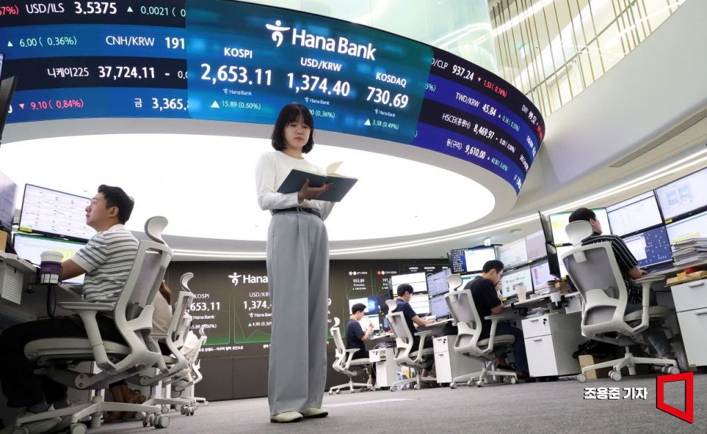 EU관세 유예 발표에 미 증시가 상승 마감한 가운데 국내 코스피도 상승 출발한 28일 서울 중구 하나은행 본점 딜링룸 현황판에 코스피와 원/달러 환율 등이 표시돼 있다. 이날 코스피는 9시30분 현재 1.17% 이상 상승한 2.668.84를 원/달러 환율은 0.30원 오른 1369.80원을 기록하고 있다.