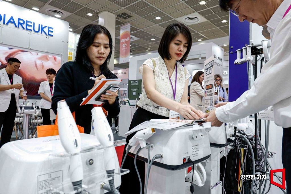 28일 서울 강남구 2025 서울국제화장품미용산업박람회 및 국제건강산업박람회를 찾은 외국인 바이어가 미용기기를 보고 있다.