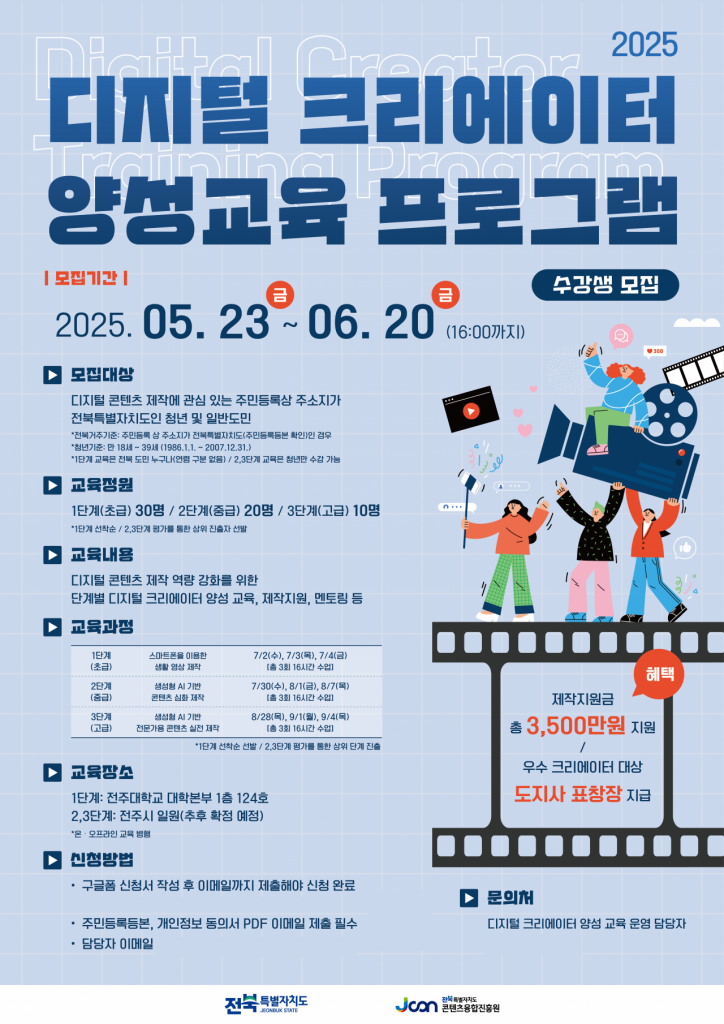 전북특별자치도와 전북특별자치도콘텐츠융합진흥원이 '2025년 디지털 크리에이터 양성 사업'을 본격 추진한다.