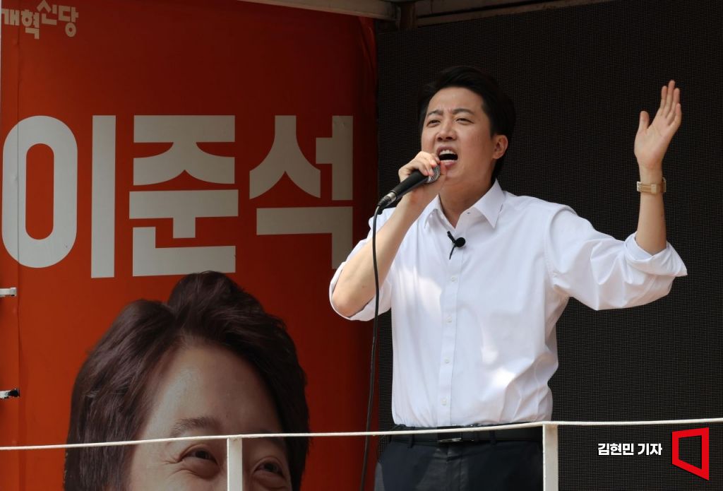 이준석 개혁신당 대선 후보가 28일 서울 여의도공원에서 시민들을 향해 지지를 호소하고 있다.