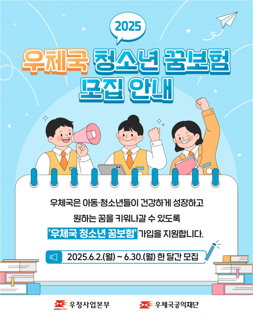 우본은 아동양육시설과 그룹홈 등 생활시설에 거주하는 만 12~15세 청소년을 대상으로 '2025년 청소년 꿈보험' 가입 지원 대상자를 모집한다고 28일 밝혔다.