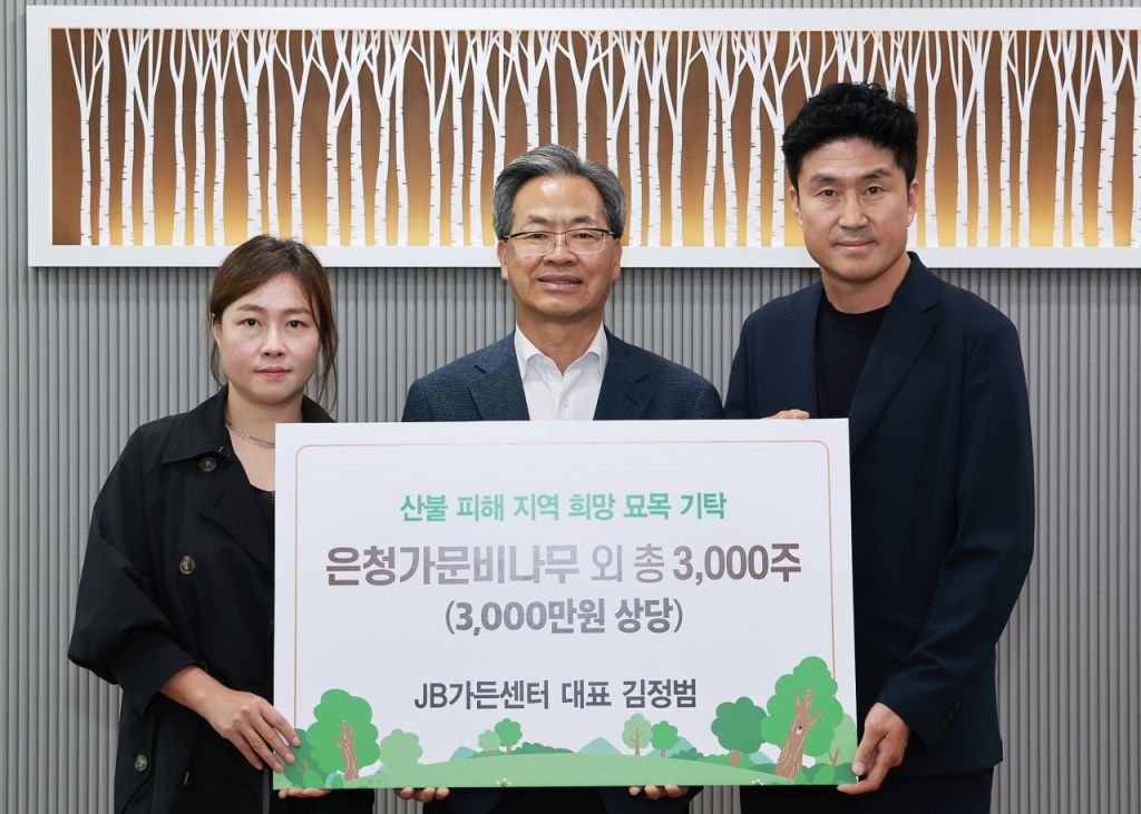 JB가든센터 김정범 대표는 "이번 묘목 기탁을 계기로 나눔 문화가 더욱 확산되고, 산불 피해 지역을 응원하고자 이번 기탁을 결정하게 됐다"라며 "앞으로도 지역사회와 함께 성장해 가는 기업이 되겠다"라고 소감을 전했다.