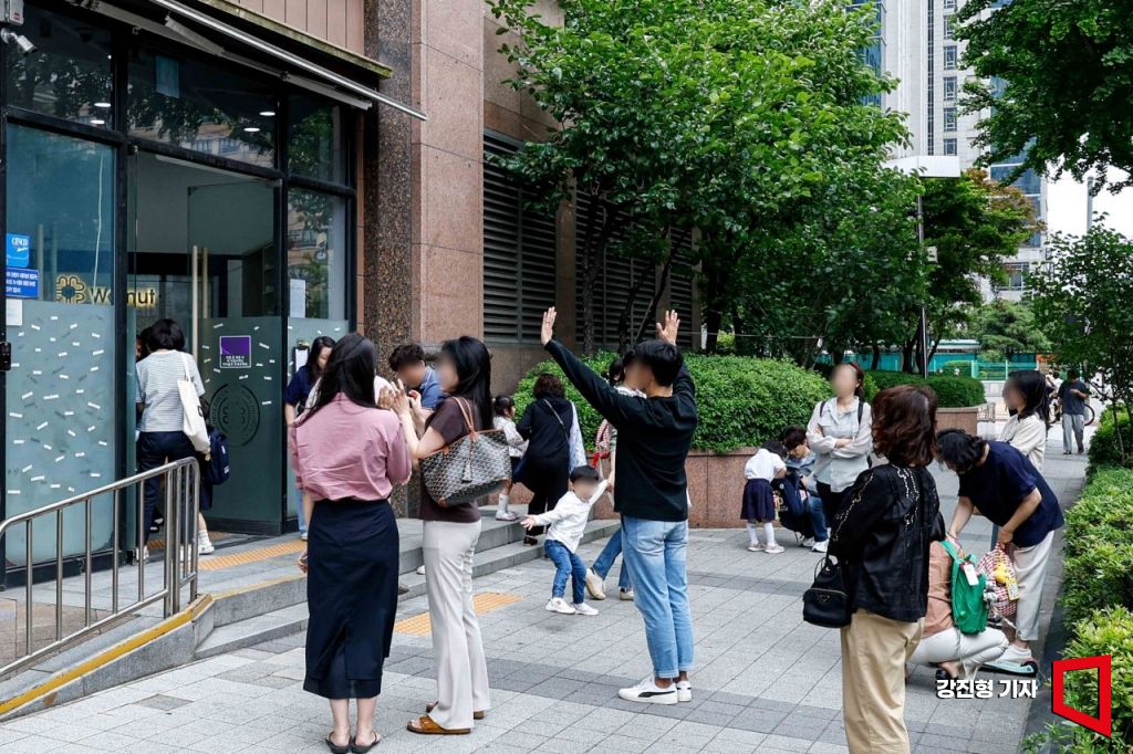 23일 서울 양천구 목동 학원가에 자리한 영어유치원에서 어린이들이 하원을 하고 있다. 강진형 기자