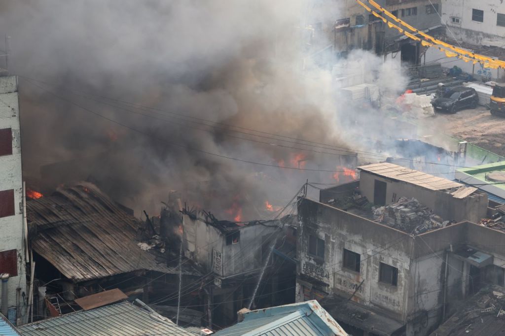 서울 중구 세운상가 인근 노후 건물에서 화재가 발생한 가운데 약 5시간 만에 큰 불이 잡혔다.