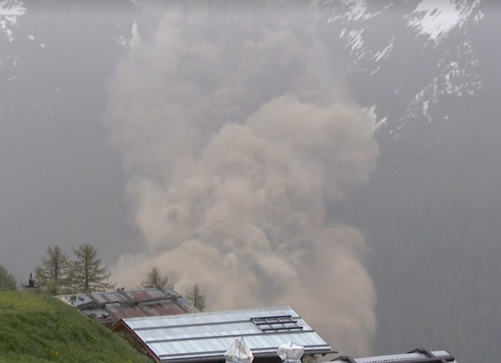보도에 따르면 빙하에서 떨어져 나온 얼음덩어리와 거대한 암석이 산비탈을 타고 마을 쪽으로 쏟아져 내렸다. 현지 매체와 사회관계망서비스(SNS)를 통해 공개된 당시 상황을 보면 남부 뢰첸탈 계곡에 있는 블라텐 마을에 진흙더미가 밀려드는 모습이 담겼다. 이로 인해 주택과 건물들은 진흙에 일부가 잠기기도 했다. 산사태는 엄청난 굉음을 동반했고, 거대한 먼지구름이 일대를 뒤덮었다고 영국 BBC 방송은 전했다.