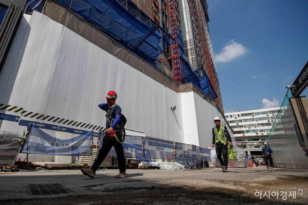 서울 한 건설현장에서 노동자들이 구슬땀을 흘리고 있다. /강진형 기자
