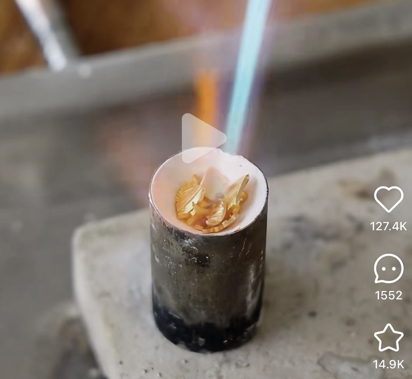 중국 인플루언서 우멍이 토치로 금콩을 녹이고 있다. 샤오홍슈