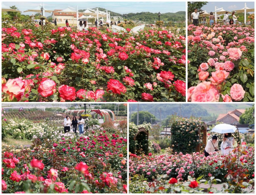 군은 해마다 이맘때가 되면 형형색색의 장미꽃이 절정을 이루며 화려한 경관을 자랑한다. 올해는 이번 주부터 본격 개화를 시작해 6월 중순까지 화려한 장미꽃이 만개해 방문객들에게 아름다운 볼거리를 선사할 예정이다.