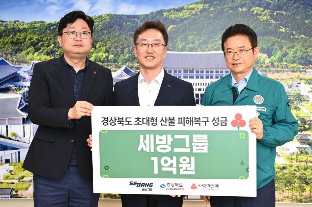 세방그룹이 29일 경북도청을 방문해 경북 북부지역 산불 피해복구와 이재민 지원을 위한 성금 1억원을 전달했다.