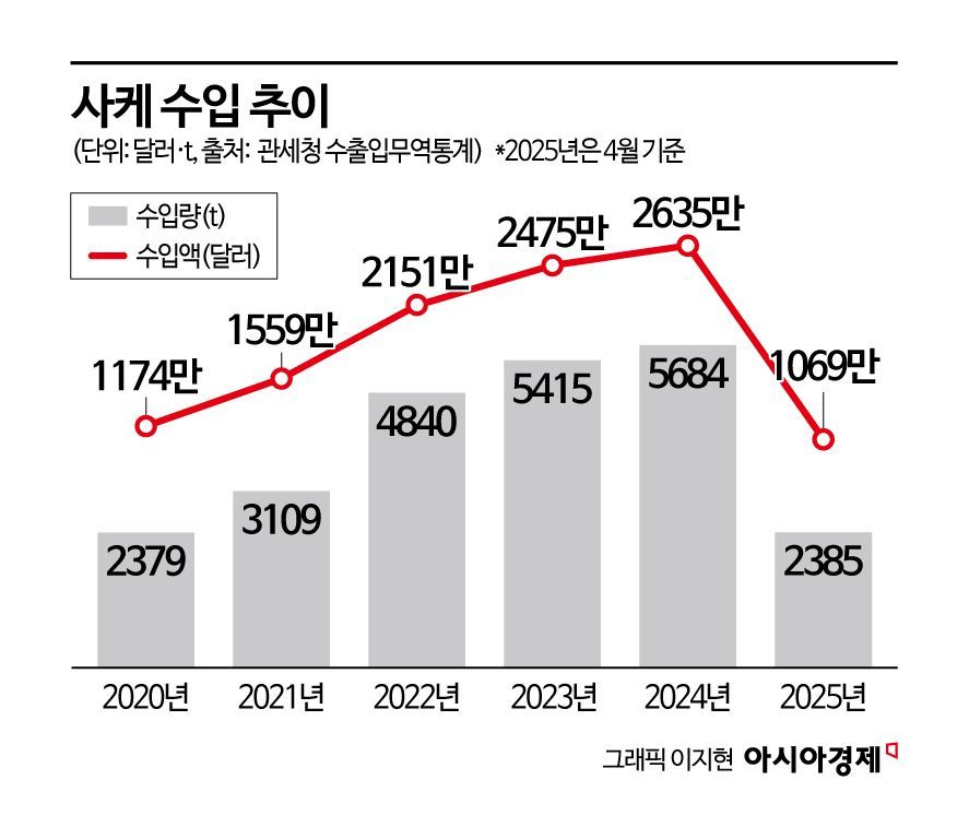수입량 증가세는 더욱 가파르다. 올해 4월까지 국내로 들어온 사케 중량은 2385t으로 전년 동기(1949t)와 비교해 22.6% 증가했다. 2020년 2379t이던 수입량은 이듬해 3000t, 2022년에는 4000t을 넘어섰고, 지난해에는 5684t까지 늘어나며 4년 새 2.5배가량 증가했다. 올해는 6000t 이상 수입될 것으로 예상된다.