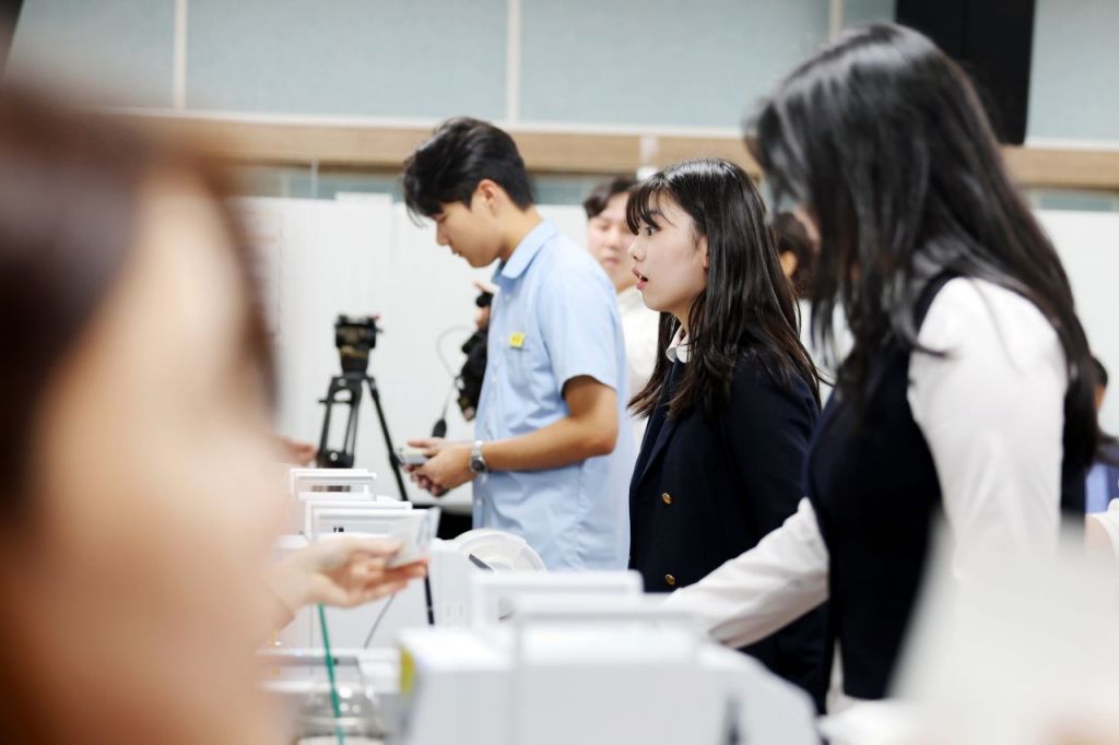 제21대 대통령 선거 사전투표 첫날인 29일 오후 광주 서구 화정2동 사전투표소에서 지역 고등학교 3학년 학생들이 생애 첫 투표를 위해 투표용지를 건네받고 있다. 연합뉴스