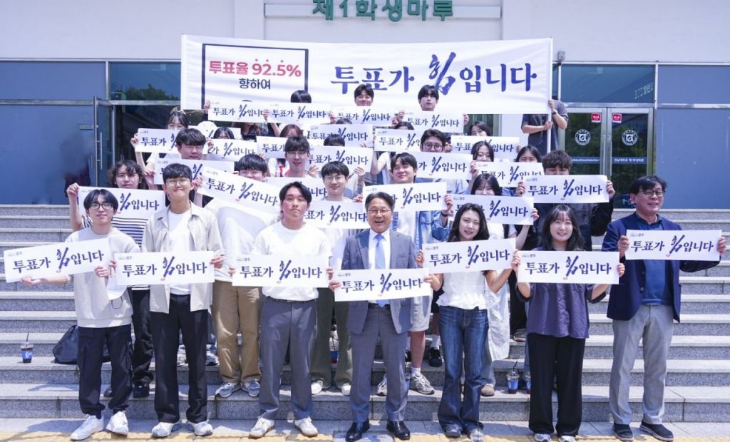 강 시장은 학생들과 광주시가 추진 중인 '투표가 힘입니다-92.5% 투표율 달성' 캠페인 의미와 투표의 중요성 설명하고, 투표 참여를 당부했다.