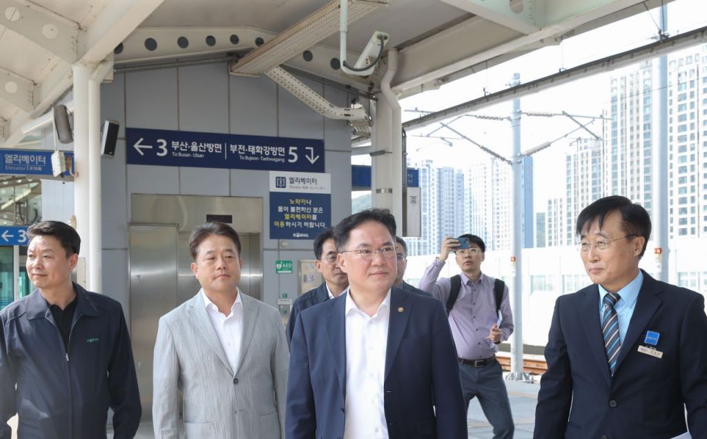 백원국 국토교통부 제2차관이 29일 경주역에서 APEC 정상회의 준비상황을 점검하고 있다. 국토부 제공