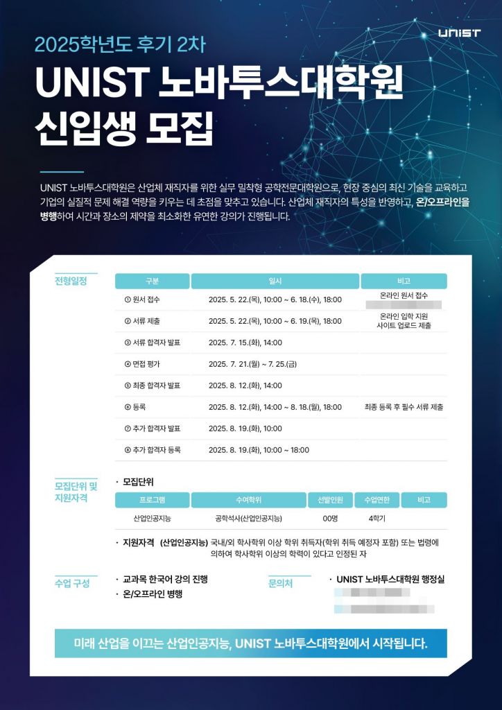 UNIST 노바투스대학원 신입생 모집(후기 2차) 포스터.