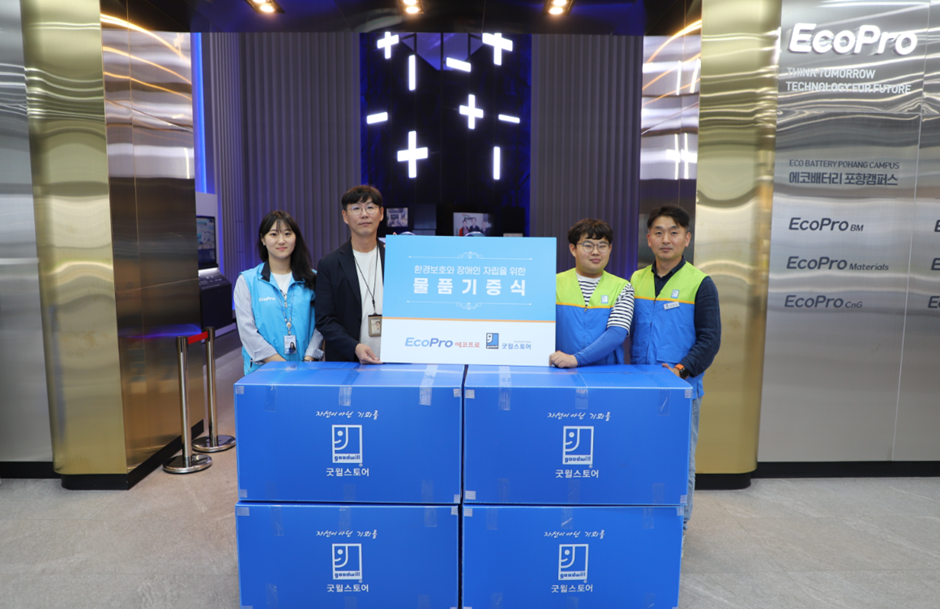 에코프로는 최근 경북 포항캠퍼스와 충북 청주 오창 본사에서 사회복지법인 밀알복지재단의 장애인 직업재활시설인 굿윌스토어와 함께 '2025 굿사이클링 캠페인 기부 물품 전달식'을 실시했다고 30일 밝혔다.