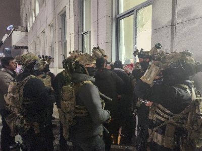 4일 국회의사당 본관에 계엄군 20여명이 국회 본관에 유리창을 부수고 진입을 시도 하고 있다. 김현민 기자