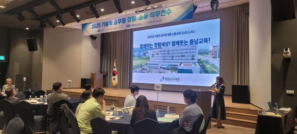 충남도교육청은 30일 오전 10시 예산군 덕산면 스플라스 리솜에서 기술직 공무원 및 교육시설 업무 담당자 150명을 대상으로 '2025 기술직 공무원 청렴·소통 직무연수'를 실시했다고 밝혔다.