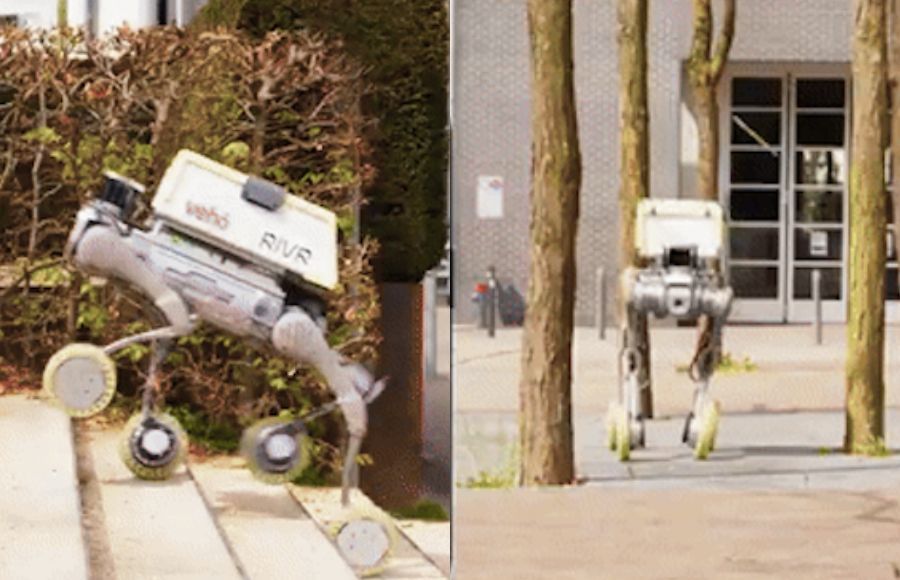 스위스 로봇 업체 RIVR의 택배 로봇이 배송물을 옮기는 모습. RIVR