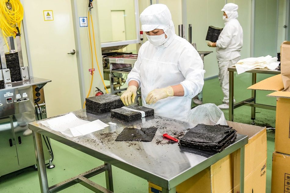 목포수산식품지원센터에서 마른 김을 포장하고 있다. 목포시 제공