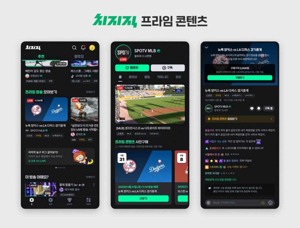 네이버 치지직은 첫 번째 프라임 콘텐츠로 스포츠 전문채널 스포티비(SPOTV)와 협력해 미국 프로야구 메이저리그(MLB) 주요 경기를 제공한다. MLB는 세계적으로 인기를 끄는 리그인 데 더해 이번 시즌 이정후(샌프란시스코 자이언츠)와 김혜성(LA 다저스) 등 한국인 선수들의 활약이 두드러지며 중계 수요가 늘고 있다.
