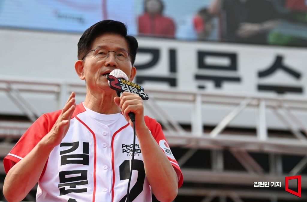 김문수 국민의힘 대선 후보가 30일 경기 가평군 청평시계탑 광장에서 열린 “쉼없이 국민 속으로" 가평군 유세에서 시민들에게 지지를 호소하고 있다. 2025.05.30 김현민 기자