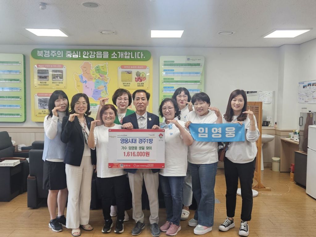 황훈 북경주행정복지센터장도 "단순한 팬 활동을 넘어 지역사회에 관심과 사랑을 전해주신 영웅시대 경주1방 회원들께 감사드린다"며 "앞으로도 안강읍의 따뜻한 이웃으로 함께해주시길 기대한다"고 전했다.