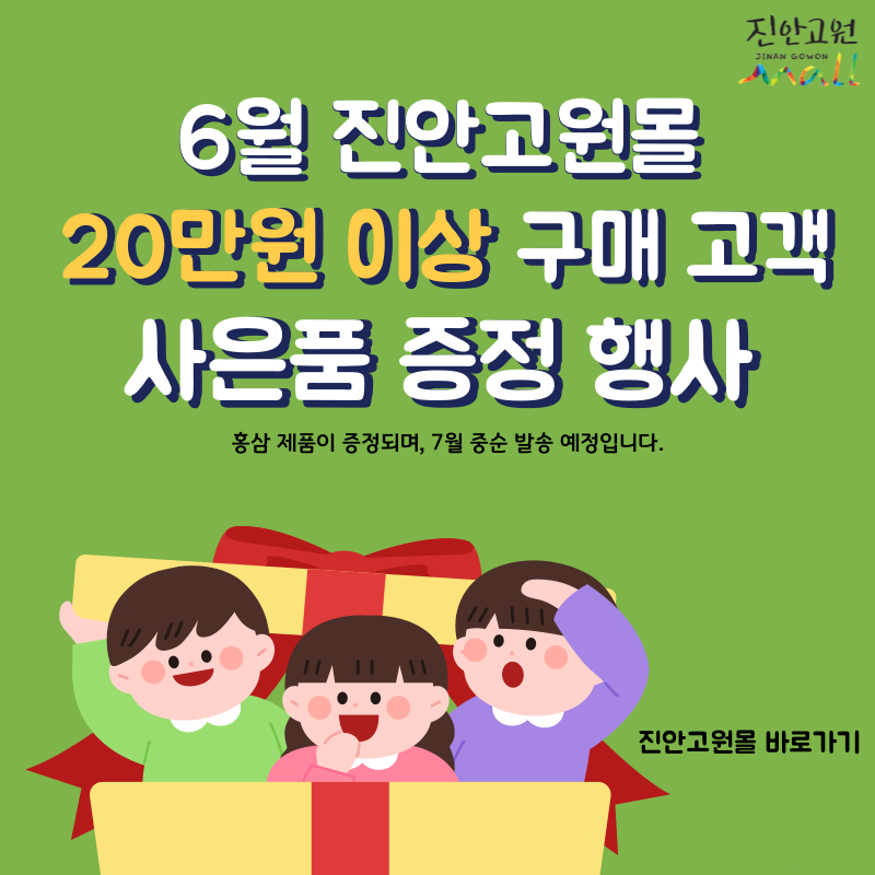 전북 진안군이 6월 한달동안 직영 온라인쇼핑몰인 '진안고원몰'에서 20만원 이상 구매한 고객들을 대상으로 사은품 증정 행사를 진행한다.