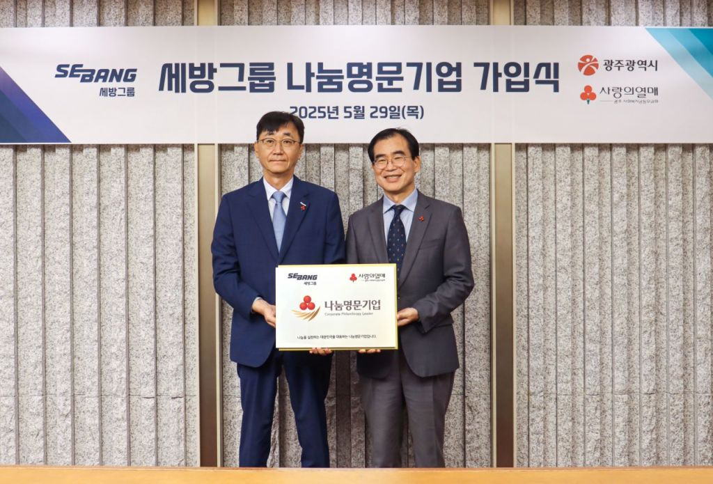 세방그룹㈜이 지역사회 공헌을 인정받아 광주사회복지공동모금회 '나눔명문기업'에 가입했다. 광주사회복지공동모금회 제공