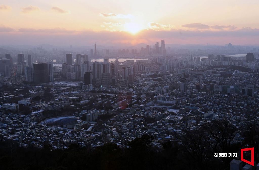 남산에서 내려다본 서울 강북과 한강, 여의도. 허영한 기자