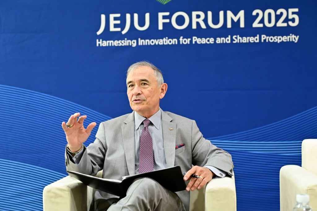해리 해리스 전 주한미국대사가 30일 제주국제컨벤션센터에서 기자간담회를 갖고 있다. 제주포럼 사무국