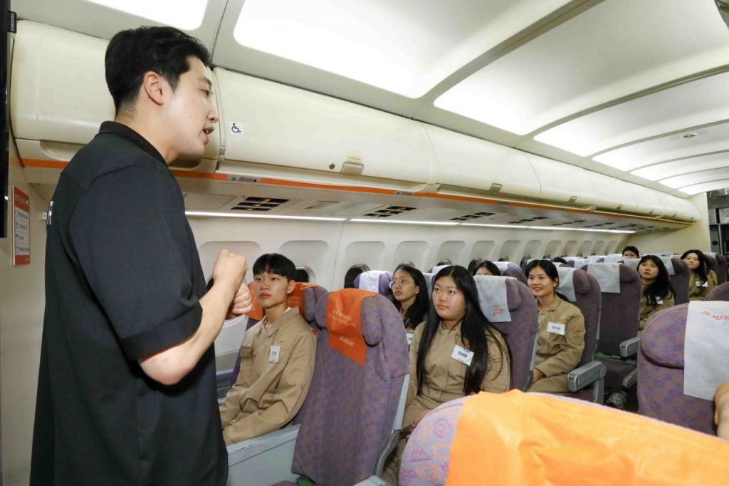 제주항공은 30일 객실승무원을 꿈꾸는 중·고등학생 50명을 대상으로 직무 교육을 실시했다고 밝혔다.