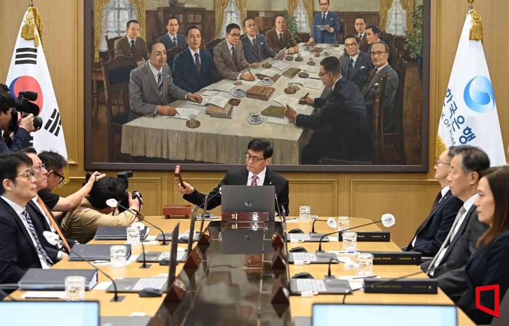 이창용 한국은행 총재가 29일 서울 중구 한국은행에서 열린 금융통화위원회를 주재하며 의사봉을 두드리고 있다. 2025.05.29 사진공동취재단