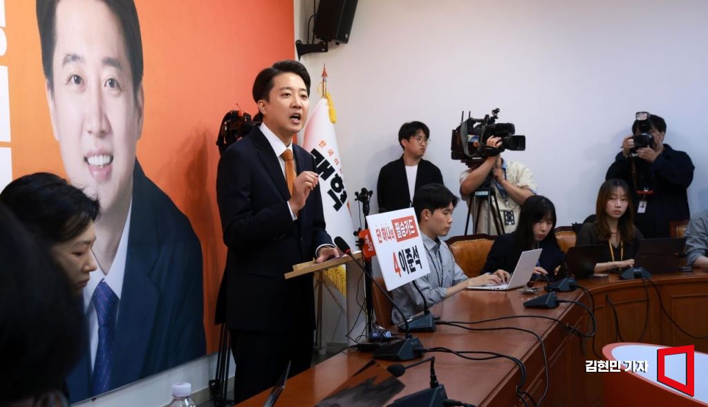 이준석 개혁신당 대선 후보가 29일 국회에서 긴급기자회견을 열고 TV 토론회에서 여성 신체에 대한 표현으로 논란이 되는 것과 관련해 입장을 밝히고 있다. 2025.5.29 김현민 기자