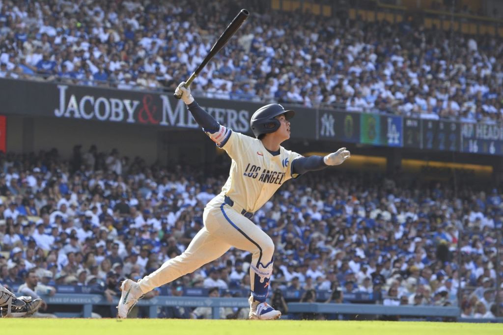 다저스 김혜성이 양키스와의 홈경기에서 2회 2점 홈런을 터뜨리고 있다. 로스앤젤레스=AP연합뉴스