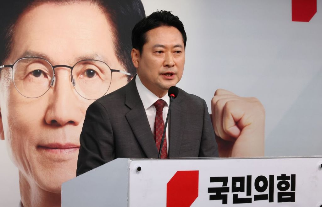 국민의힘 장동혁 선대위 상황실장이 1일 서울 여의도 중앙당사에서 긴급 현안 기자회견을 열고 민주당의 '댓글 공작' 의혹 등 제기와 관련해 반박하고 있다. 연합뉴스