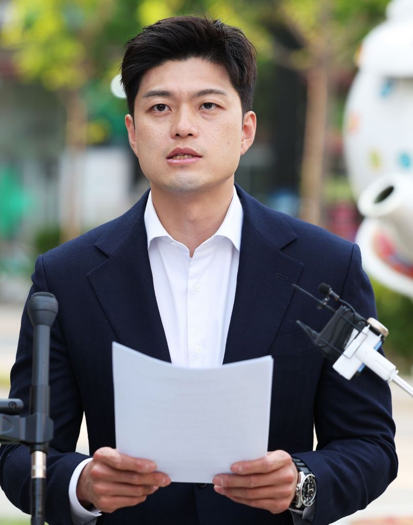 국민의힘 김용태 비상대책위원장이 30일 경기도 화성시 동탄역 인근에서 사전투표 관련 기자회견을 하고 있다. 연합뉴스