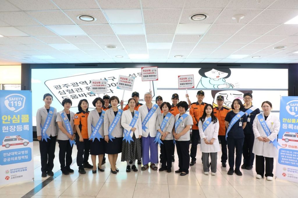 전남대학교병원이 공공보건의료협력체계 구축사업인 중증응급질환 환자의 골든타임 확보를 위한 '119안심콜 서비스' 등록 캠페인을 펼쳤다. 전남대병원 제공
