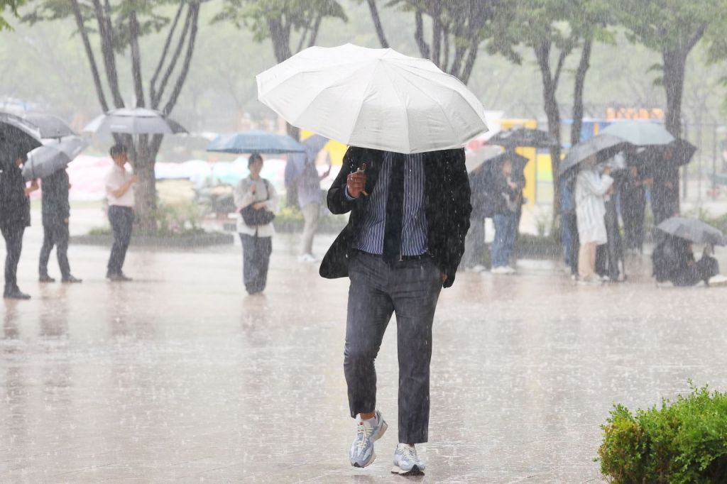우산을 쓴 시민들이 발걸음을 재촉하고 있다. 연합뉴스