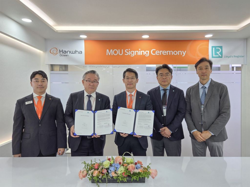 한화오션은 부산 벡스코에서 열린 '국제해양방위산업전(마덱스·MADEX) 전시회 현장에서 로이드 선급과 해외 함정 수출을 위한 설계 인증 및 품질 보증 협력에 관한 전략적 양해각서(MOU)를 체결했다고 2일 밝혔다. 체결식은 지난달 30일 정승균 한화오션 특수선해외사업단장(부사장)과 홍충식 로이드선급 극동아시아 사업총괄 부사장 등 양사 관계자들이 참석한 가운데 진행됐다.