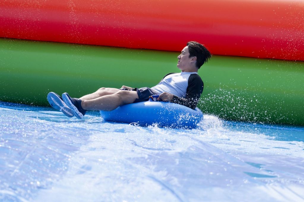 이중 스플래쉬 슬라이드(6개 레인)는 에어바운스 형태의 초대형 튜브 슬라이드로, 물이 흘러가는 약 6m 높이 시작점에서 튜브에 앉아 출발한다. 곧장 45도 각도로 급하강한 뒤 110m 길이의 슬로프를 따라 시원하게 질주하며 짜릿한 쾌감을 맛볼 수 있다. 레일 슬라이드(8개 레인)에선 바퀴가 달린 썰매를 타고 90m 길이의 슬로프 레일 위를 질주할 수 있는데, 여름 시즌에는 스프링클러·워터 스프레이 등을 설치해 더욱 시원한 슬라이드 체험을 선사한다.