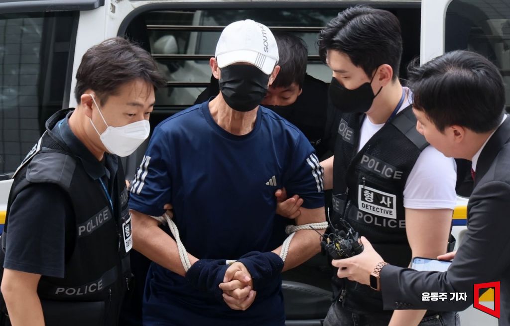 서울 지하철 5호선 열차 안에 불을 지른 60대 남성이 2일 영장실질심사를 위해 서울남부지법에 출석하고 있다.