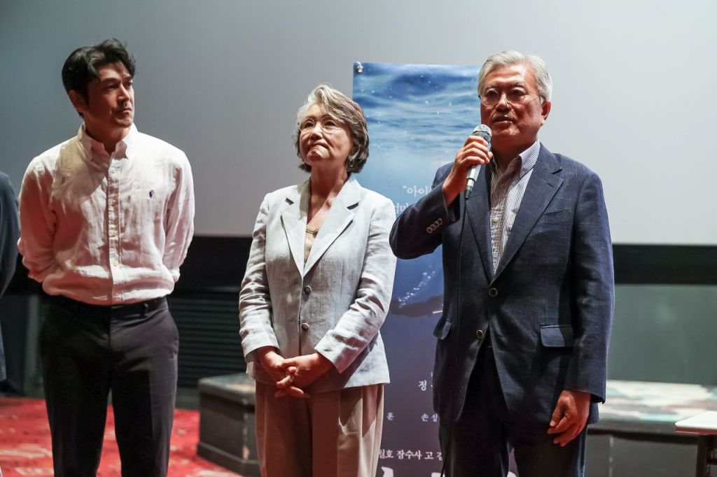배급사 영화로운형제는 문재인 전 대통령 부부가 지난달 31일 부산에서 열린 영화 '바다호랑이' 상영회에 참석했다고 2일 밝혔다.