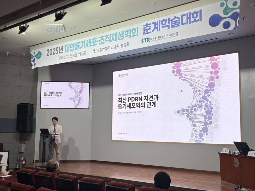 전문의약품 생산 기업 제론셀베인은 '2025 대한줄기세포 조직재생학회 춘계학술대회' 연자로 나서 PDRN 기반 전문의약품 '셀베인주'의 작용 기전과 조직재생 효과에 대해 강연했다고 2일 밝혔다.
